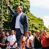 Opposition leader Juan Guaido calls for fresh elections during a rally in Caracas.