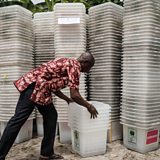 (Picture: A member of staff separates ballot boxes before delivery to polling stations ahead of Nigeria's Presidential election. Credit:Yasuyoshi Chiba AFP/Getty Images)