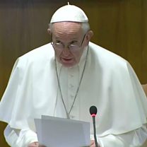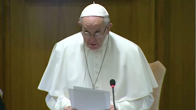 Image: Pope Francis delivering a speech at the summit. Credit: Reuters.