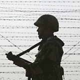(Photo: Indian Border Security Force soldier patrols along the India-Pakistan border; Credit: European Photopress Agency)