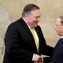 US Secretary of State Mike Pompeo meets with Lebanon's President Michel Aoun. Credit Jim Young/AFP/Getty Images.