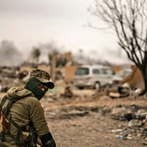 (Photo: A member of the Syrian Democratic Forces (SDF) looks on while on watch duty in the village of Baghouz. Credit: Getty Images)