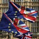 Image: Protesters' flags made from joined half Union and half EU flags. Credit: Daniel Leal-Olivas/AFP/Getty Images.