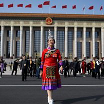 (Picture: A delegate outside the Great Hall of the People. Picture credit: Getty Images.)