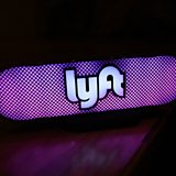 (Picture: A Lyft logo. Picture credit: Getty Images.)