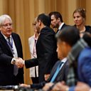 (Photo: UN special envoy to Yemen Martin Griffiths shakes hands with Yemeni delegates during the opening press conference of the Yemeni peace talks in Sweden. Credit: Getty Images)