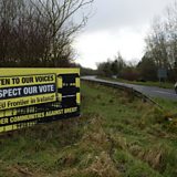 (Photo: A Border Communities Against Brexit sign can be seen on Aghalane bridge in Aghalane, Ireland. Many people in Northern Ireland and Ireland are concerned about a return of a so-called hard border, which could inspire unrest reminiscent of the Troubles. Credit: Charles McQuillan/Getty Images)