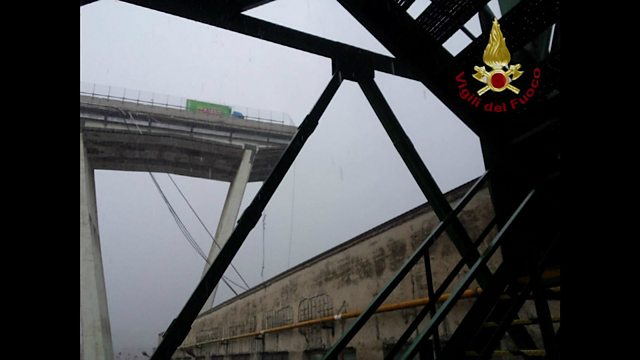 (Photo: Part of collapsed bridge in Genoa; Credit: EVN)