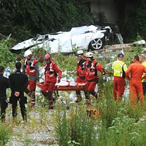 (Photo: Rescue workers carry a body at the collapsed Morandi Bridge, Genoa. Credit: Reuters)