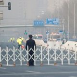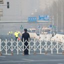 (Photo: Chinese policemen block a road as a procession believed to be North Korean officials pass near Diaoyutai State Guesthouse in Beijing. Credit; AFP)