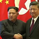 (Picture: Kim and Xi (right) in front of flags of China and the DPRK Credit: AFP)
