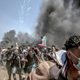 (Picture: Protesters run for cover from tear gas dispersed from Israeli drones Credit: EPA)