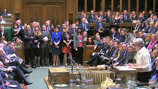 (Picture:Britain's Prime Minister Theresa May making a statement in the House of Commons on British participation in air strikes on Syria. Credit: AFP/PRU)