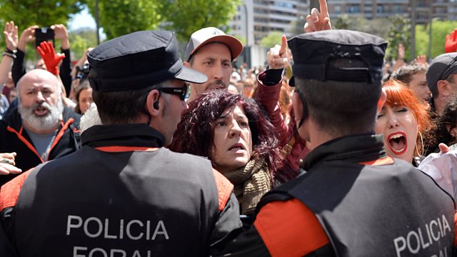 We hear from Spain where five men accused of gang-raping an 18-year-old woman have been convicted of sexual abuse but acquitted of the more serious crime of rape, in a case that has sparked a national outcry. According to a police report, the men belonged to a WhatsApp group called "La manada" (wolf pack).