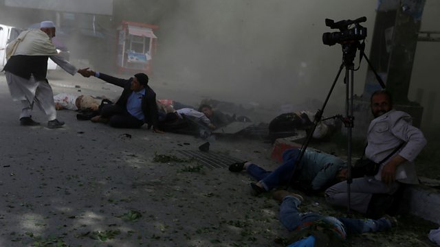 Dozens of people were killed in a double suicide attack in Afghanistan's capital city, Kabul. Several journalists documenting the scene were casualties, and many children were injured. We hear from a BBC journalist who was close to some of the victims. Also, we hear from Britain's new Home Secretary, Savid Javid as the government struggles to deal with a row over deporting immigrants. And we have a report on the missile strikes overnight in northern Syria.