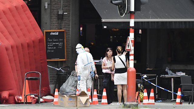 An update on the shooting incident in Belgium. And: BBC Monitoring that summarises news from 150 countries in 100 different countries for the BBC, has moved from Caversham Park in Berkshire to our headquarters in London, closer to the BBC language services. We'll take a walk to the 6th floor to get the latest media reports of the trip by one of North Korea’s most senior officials to the United States. And conversation about the controversy over the gun tattoo of the English footballer Raheem Sterling.