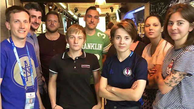 On OS Russia; Ben James has been watching the hosts play their final group stage game of the World Cup with members of a women's football team. Ben talks with them about how Russian women are viewed in football, sport and society.