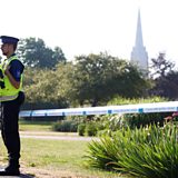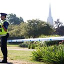 (Photo: A police officer guards a cordoned off area of Queen Elizabeth Gardens in Salisbury. Credit: Reuters)