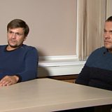 ( Photo: Two Russian men with the same names as those accused by Britain over the Skripal case appearing in an interview on RT. Credit: RT/Reuters)