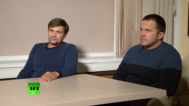 The pro-Kremlin TV channel RT has featured an interview with the two men accused by the UK of trying to kill Russian ex-spy Sergei Skripal and his daughter Yulia in March. The men said they are simply Russian businessmen who were on a short break abroad. We'll get more details from our Russian service.