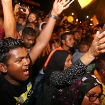 (Photo: Supporters of Ibrahim Mohamed Solih celebrate, September 24, 2018. Credit: Reuters/Ashwa Faheem)