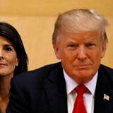(Photo: Nikki Hale & Donald Trump participate in a session at the UN Headquarters in New York on 18/09/17. Credit: Reuters)