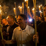 (Photo: Peter Cvjetanovic (C) along with Neo Nazis, Alt-Right, and White Supremacists in Charlottesville, USA on August 11, 2017. Credit: Samuel Corum/Anadolu Agency/Getty Images)