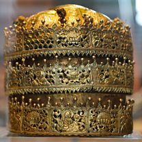 (Photo: A crown made in Ethiopia around 1740, now displayed in Britain's Victoria and Albert Museum. Credit: DANIEL LEAL-OLIVAS/AFP/Getty Images)