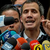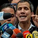 (Picture:Venezuela's National Assembly head and self-proclaimed 'acting president' Juan Guaido speaks to the press. 27 Jan 2019. Credit:Luis Robayo/AFP/Getty Images)