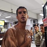 (Photo: Hakeem al-Araibi is escorted to a courtroom in Bangkok on 04/02/19. Credit: Getty Images)