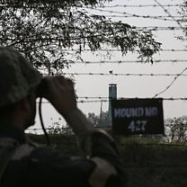 (Photo: An Indian soldier during patrol along the fenced border with Pakistan in Ranbir Singh Pura sector near Jammu 26/02/19. Credit: Mukesh Gupta/Reuters)