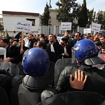 Hundreds of lawyers have marched in protest in the streets of the Algerian capital, Algiers, demanding that President Abdelaziz Bouteflika step down after 20 years in power. Mr Bouteflika's decision to put himself forward for a fifth term in office has led to a series of protests across the country in recent weeks. We get the latest.