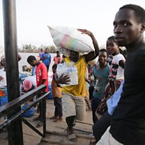 (Photo: People at the harbour of the village of Buzi carrying supplies from the city of Beira, Mozambique, 28 March 2019. Credit: EPA / Tiago Petinga)