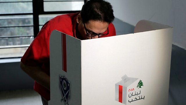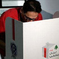 (Image: A Lebanese man ticks his ballot behind at a polling station of Beirut. Credit: Getty Images)