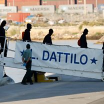 After being refused entry by Italy and Malta the first group of migrants arrive on land