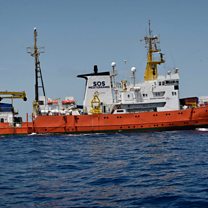 (Image: The MV Aquarius in the Mediterranean Sea. Credit: Reuters)