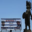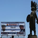 (Picture: A billboard advertising presidential candidate Andres Manuel Lopez Obrador stands next to the Cuauhtemoc monument. Credit:Mario Tama/Getty Images)