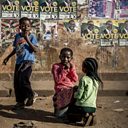 (Photo: Children play in front of electoral posters in a residential area located in the suburb of Mbare in Zimbabwe's capital Harare. Credit: Luis Tato/AFP/Getty Images)