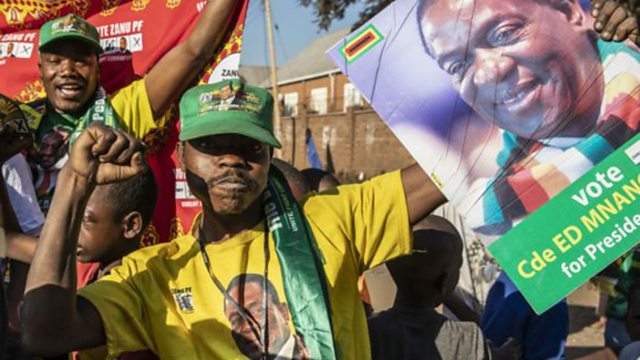 (Image: Supporters of Emmerson Mnangagwa in Zimbabwe. Credit: Getty Images)