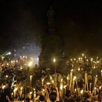 (Image: White nationalists at the base of the Thomas Jefferson statue on the UVA campus. Credit: Getty Images)