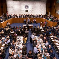(Image: A wide shot of Brett Kavanaugh’s confirmation hearing Senate Judiciary Committee on Capitol Hill in Washington, DC, on 6th September 2018. Credit: Melina Mara/The Washington Post/Getty Images)
