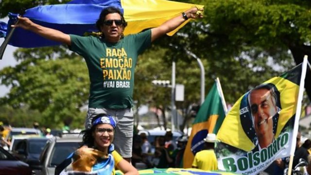 (Image: Supporters of right wing candidate Jair Bolsonaro Credit: AFP)