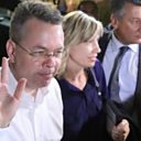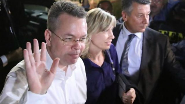 (Image: Andrew Brunson and his wife at the airport in Izmir. Credit: Reuters)