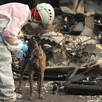 (Picture: A Cadaver dog assisting in the search for bodies in California. Credit: Getty Images)