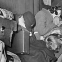 (Image: Exhausted children asleep on long journey to England on board the Kindertransport. Credit: Getty Images)