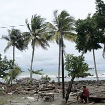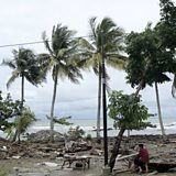(Image: An Indonesian man sits down among the ruins of houses after a tsunami hit Sunda Strait, Indonesia. Credit: EPA)