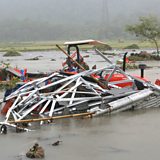 (Image: A ruined tractor sits in the water after a tsunami hit Sunda Strait in Indonesia. Credit: EPA)