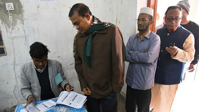 (Image: An election official cross-checks the identity of a voter with a list at a polling station in Dhaka, Bangladesh on 30th December 2018. Credit: Indranil Mukherjee/AFP/Getty Images)