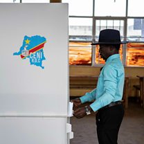 Image: An electoral worker assembles a polling booth for a polling station at the Edap/ISP school in Bukavu. Credit Fredrik Lerneryd/AFP/Getty Images.