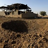 (Picture: An explosion crater is seen behind a destroyed factory after a reported airstrike by Saudi-led coalition in the Yemeni capital Sanaa, on 20th January 2019. Credit: Mohammed Huwais/AFP/Getty Images)
